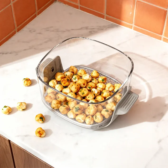 So lifting, carrying, and serving is easier and safer than most traditional air fryers.